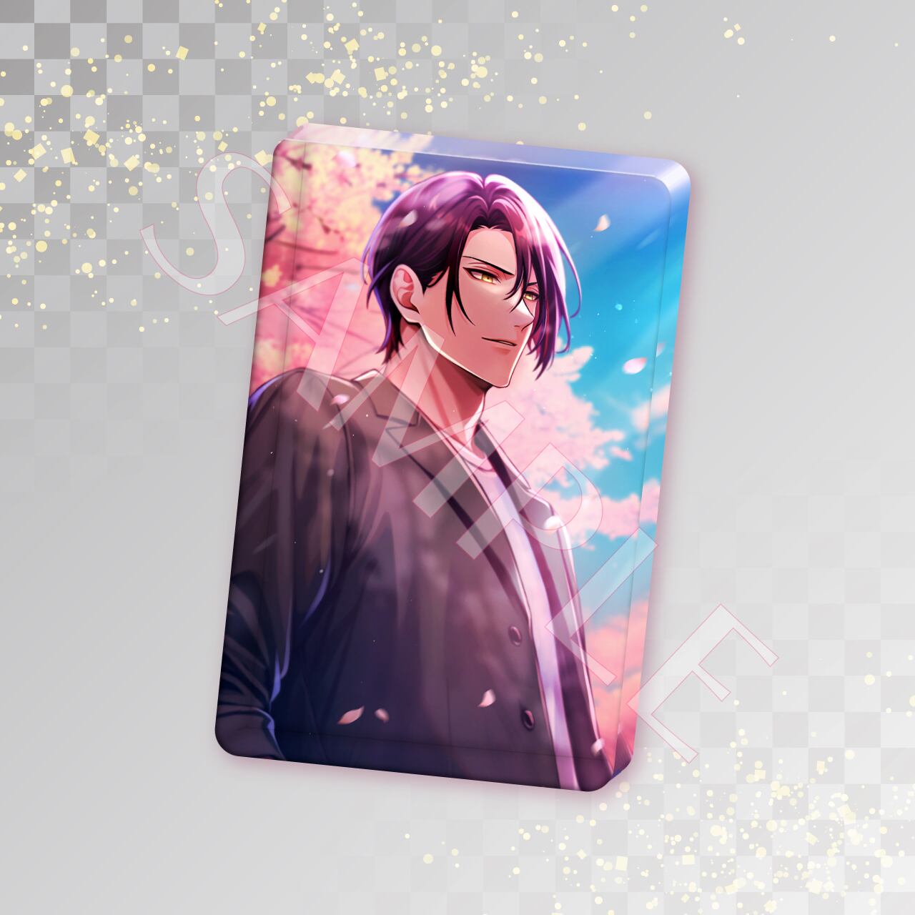 春のやわらかな光と舞い散る桜の中、キャラクターたちが静かに佇む情景をアクリルブロックに収めました。