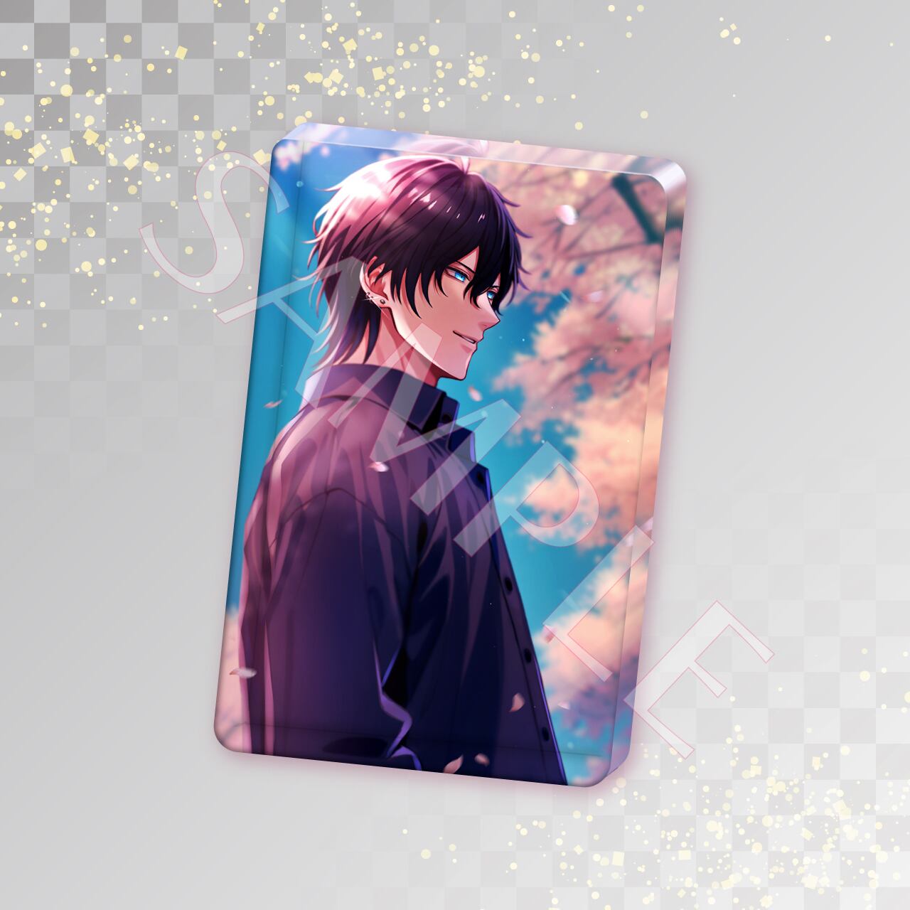 春のやわらかな光と舞い散る桜の中、キャラクターたちが静かに佇む情景をアクリルブロックに収めました。