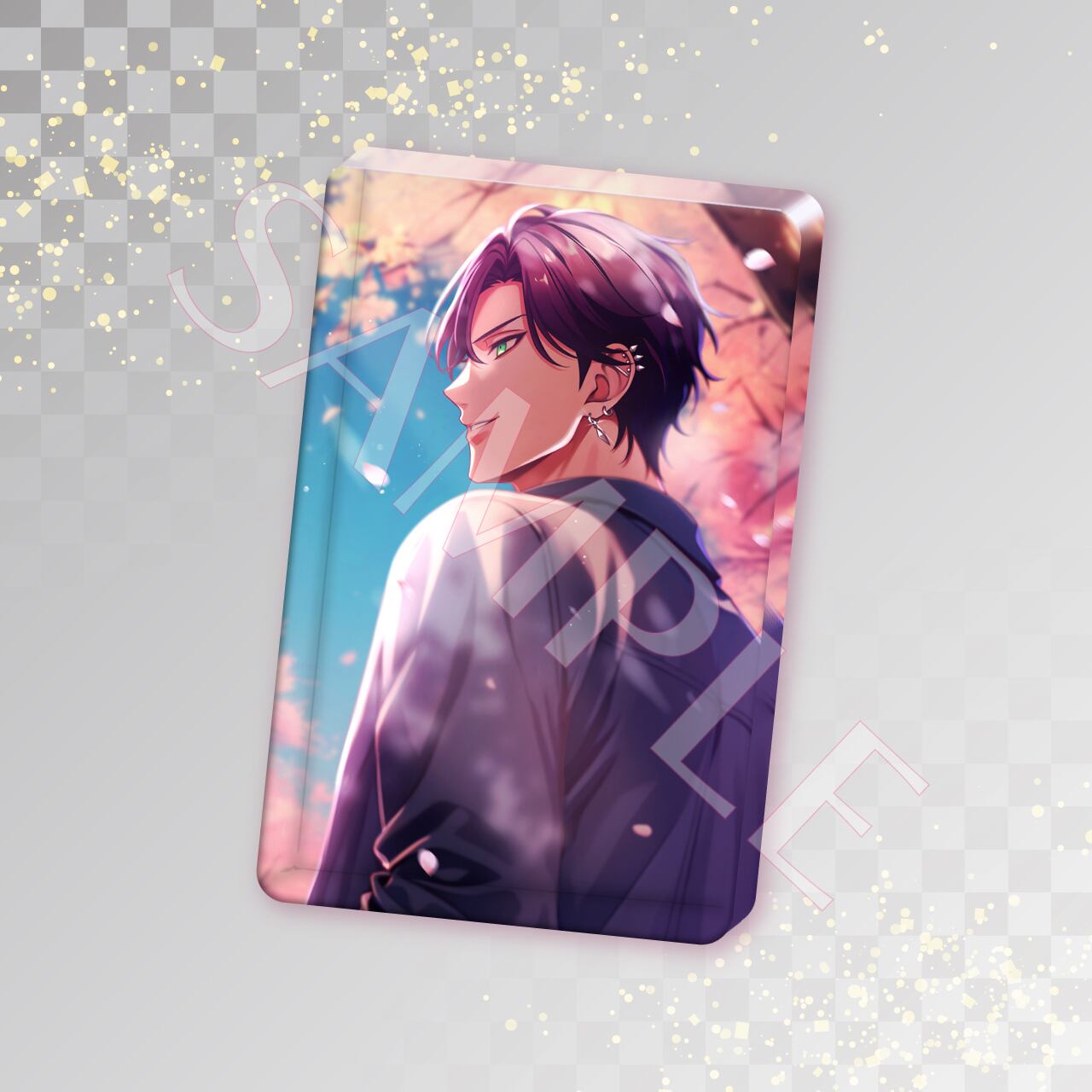 春のやわらかな光と舞い散る桜の中、キャラクターたちが静かに佇む情景をアクリルブロックに収めました。